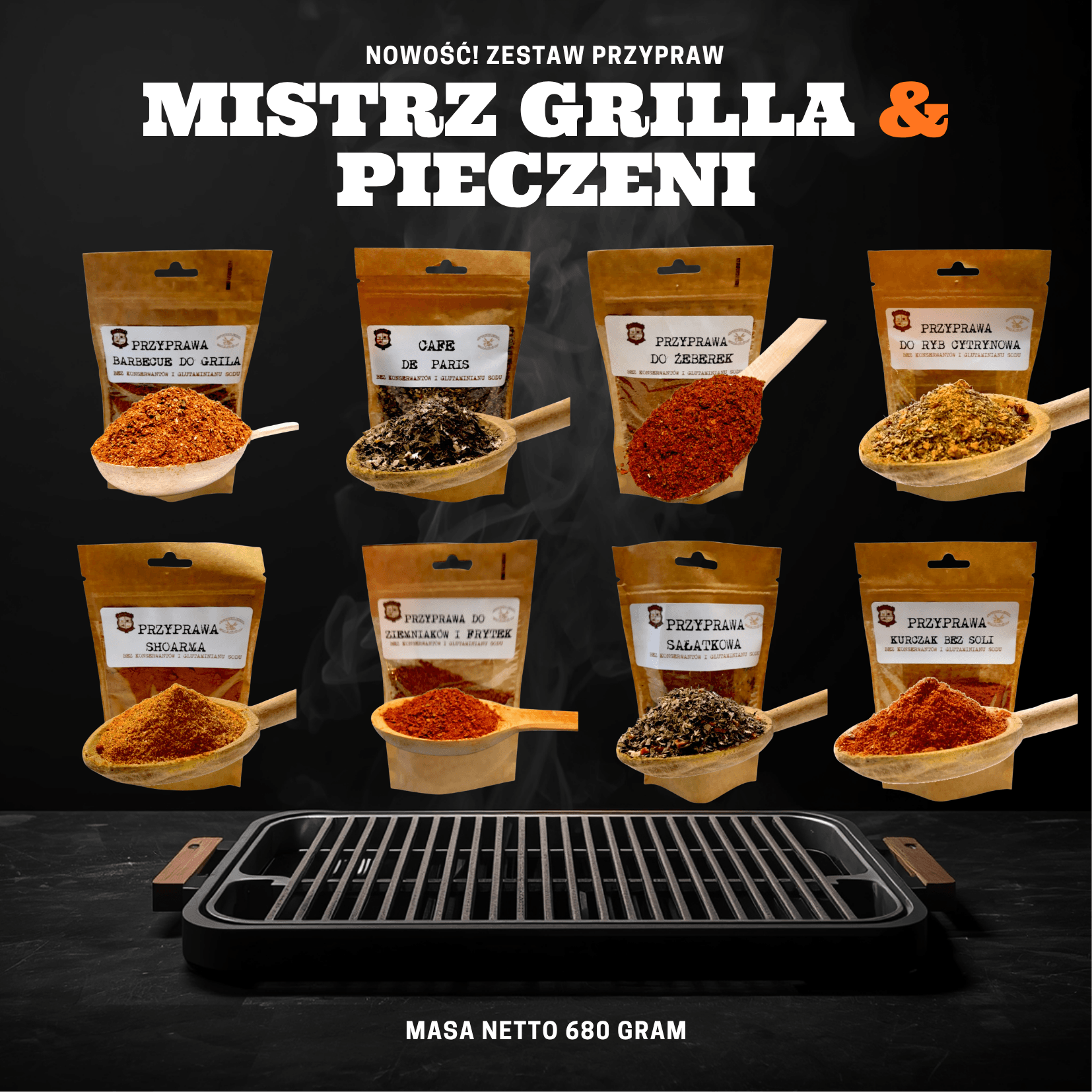 „Mistrz Grilla & Pieczeni” to starannie dobrany zestaw naturalnych mieszanek, które przeniosą Twoje potrawy z rusztu na wyższy poziom kulinarnej przyjemności. Niezależnie od tego, czy przygotowujesz soczystą karkówkę, aromatyczne żeberka czy lekką sałatkę – masz pod ręką wszystko, czego potrzebujesz, by zachwycić smakiem.